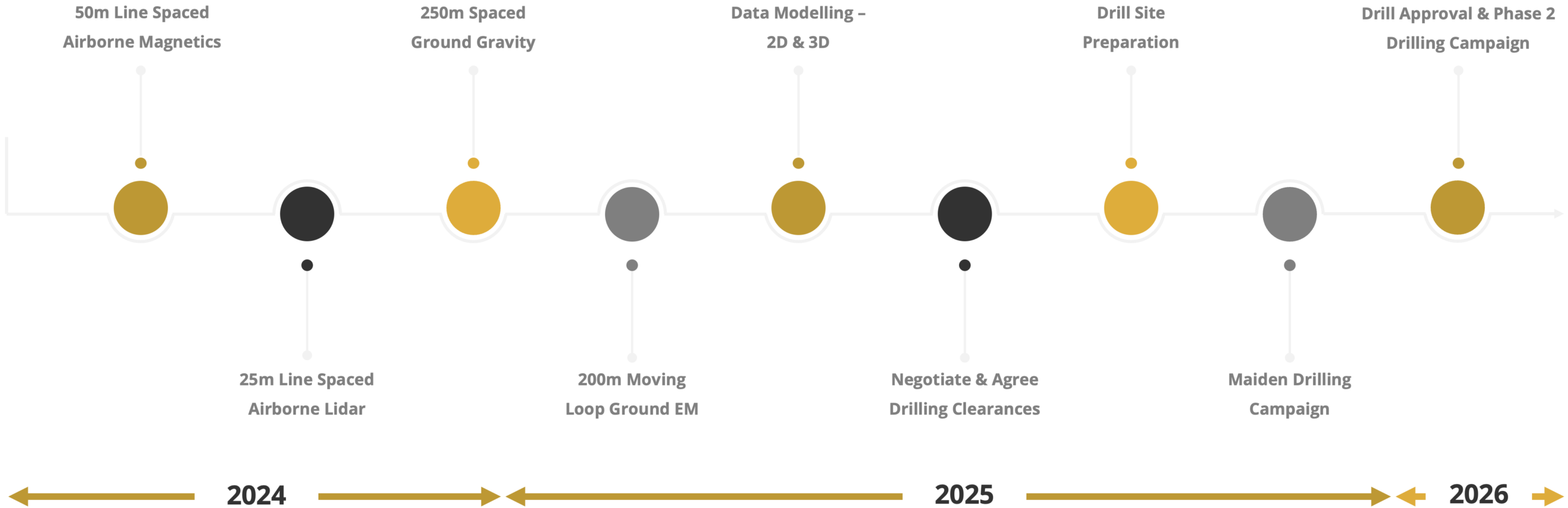 Historical data from the 90s and early 2000s is poorly constrained and more modern surveys are required to better locate and ‘see’ the target using up to date modelling techniques, as used in the Havieron discovery.